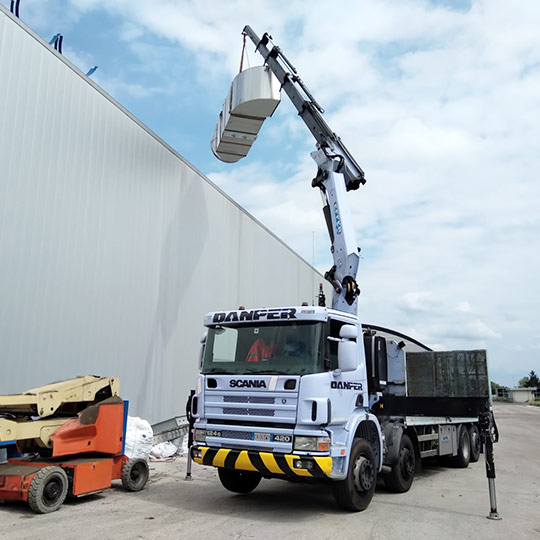 La Danper si occupa di trasporto conto terzi di macchine operatrici, traslochi industriali e servizio gru con operatore.